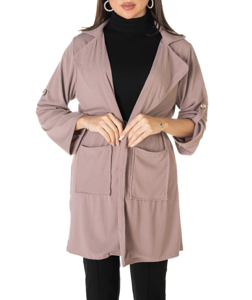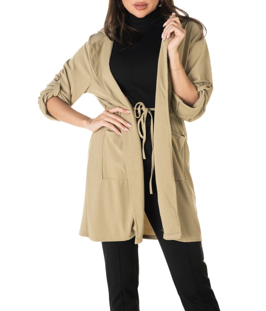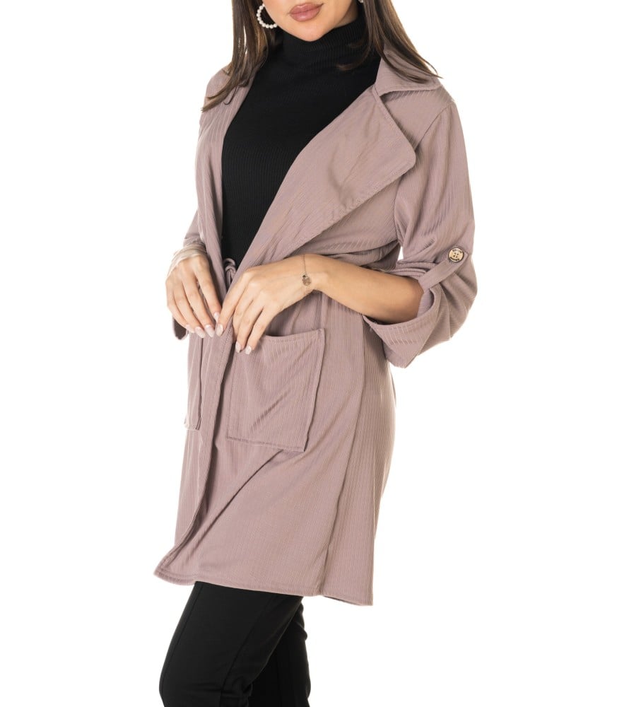 جاكيت نسائي طويل بتصميم بسيط وأنيق، مصنوع من خامة عالية الجودة توفر دفءًا وراحة. قصة فخمة تضفي لمسة عصرية، مثالي للإطلالات اليومية والمناسبات.