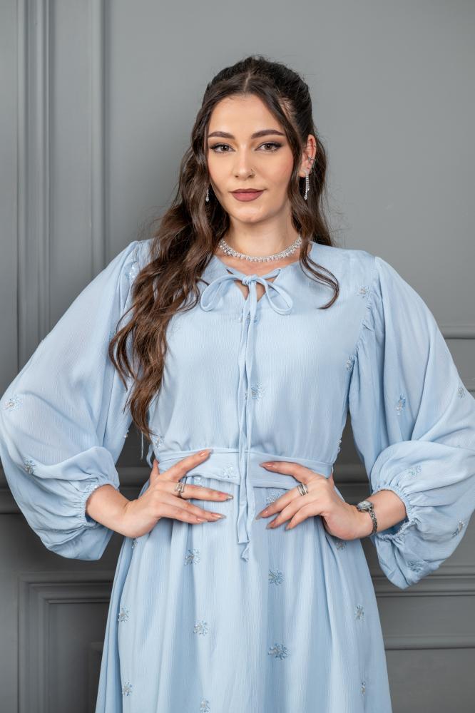 فستا يتميز بتصميم فريد يجمع بين أناقة القطعة ولمسات طبيعية. يتألق الفستان بإطلالة جذابة على قماش ذو جودة عالية، مما يمنحه طابعاً جمالياً خاصاً. التفاصيل المدروسة مثل القصات والزخارف تعزز من جاذبية الفستان، مما يجعله اختيارًا مثاليًا ومظهر يمزج بين الرقي والطابع الطبيعي
